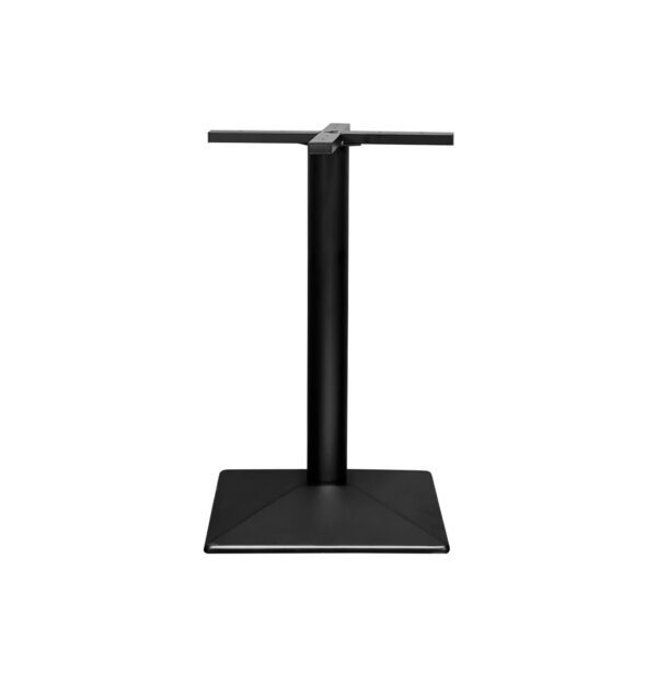 Esta base está pensada para entornos comerciales de alto tránsito como restaurantes, cafeterías o bares. Su diseño con plato base redondo, columna cilíndrica central y cruceta superior de fijación proporciona una estabilidad óptima y un montaje seguro para distintos formatos de tableros.