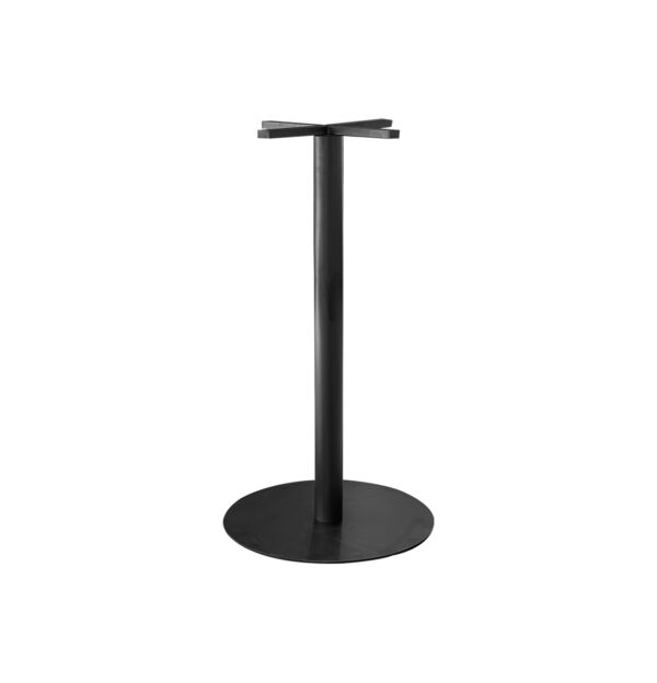 Esta base está pensada para entornos comerciales de alto tránsito como restaurantes, cafeterías o bares. Su diseño con plato base redondo, columna cilíndrica central y cruceta superior de fijación proporciona una estabilidad óptima y un montaje seguro para distintos formatos de tableros.