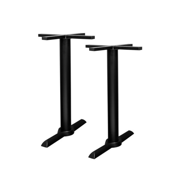 Esta base está pensada para entornos comerciales de alto tránsito como restaurantes, cafeterías o bares. Su diseño con plato base redondo, columna cilíndrica central y cruceta superior de fijación proporciona una estabilidad óptima y un montaje seguro para distintos formatos de tableros.