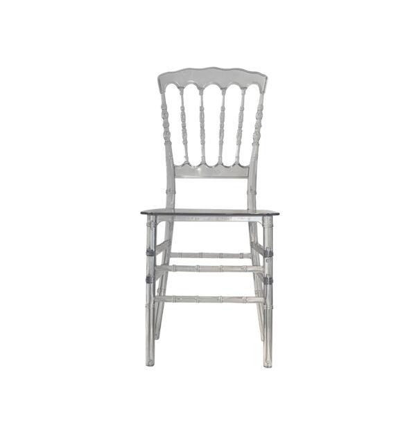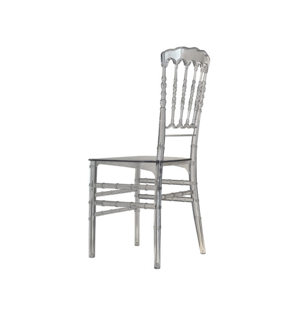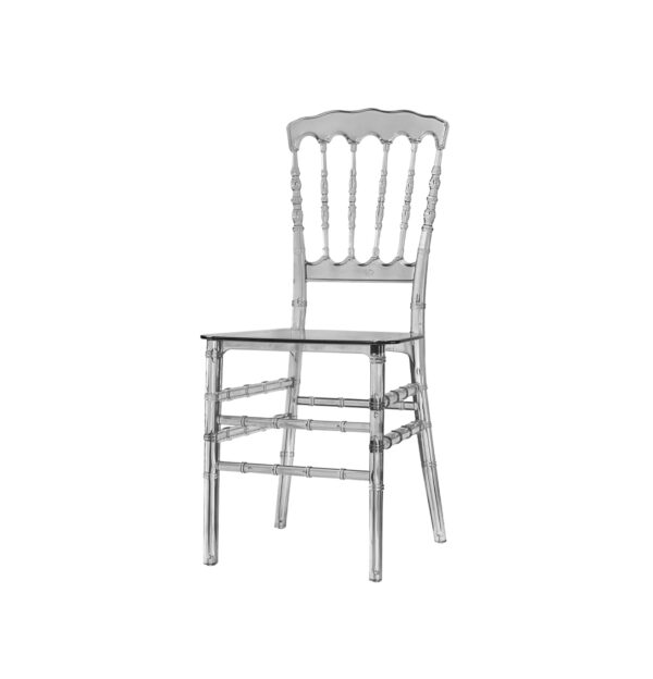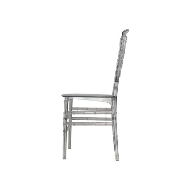 La silla Tiffany transparente combina un diseño clásico con un toque contemporáneo gracias a su estructura totalmente translúcida. Su silueta ligera y elegante aporta sofisticación sin recargar el espacio, permitiendo que otros elementos decorativos y cromáticos destaquen a su alrededor.