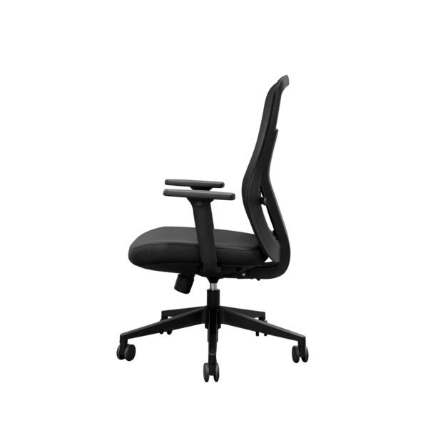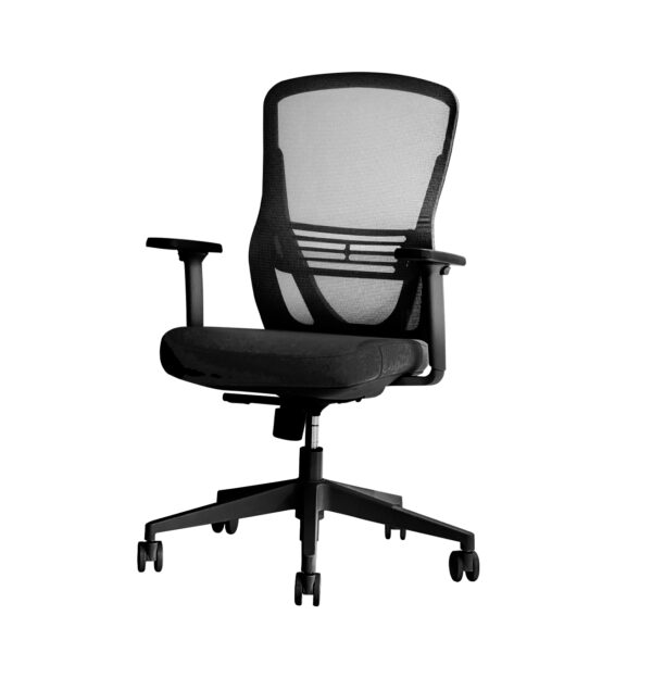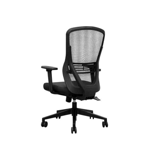 - Respaldo de malla transpirable: Ideal para mantener la ventilación durante largas jornadas. Tiene soporte lumbar integrado y ajustable.