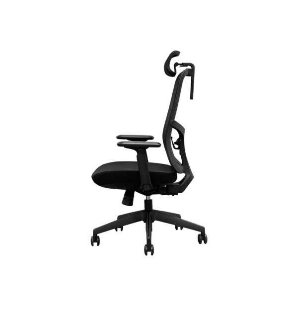 - Soporte Lumbar Regulable: Refuerzo activo para la zona baja de la espalda, ajustable tanto en altura como en profundidad para mantener la alineación correcta de la columna.