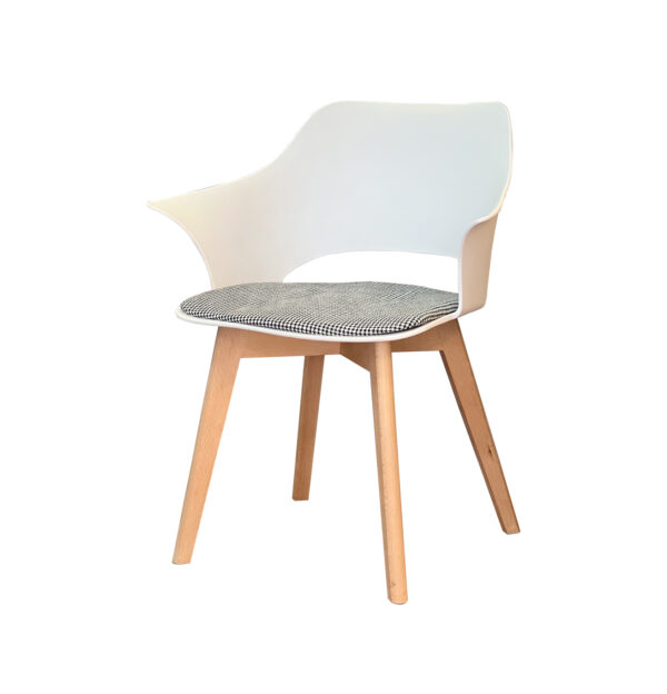 La silla Angie combina diseño moderno y funcionalidad, con una estructura ligera pero resistente que ofrece comodidad y estilo en cualquier espacio. Su respaldo ergonómico y su asiento tapizado aportan confort, mientras que la base de madera brinda estabilidad y un aire cálido, ideal para ambientes contemporáneos como comedores, oficinas o espacios de reunión.