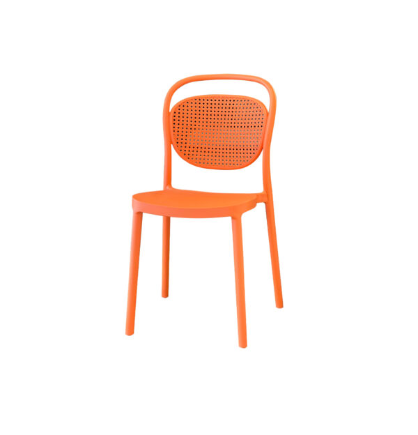 Con respaldo perforado y estructura sólida, esta silla ofrece un diseño moderno que aporta frescura y color a cualquier espacio.