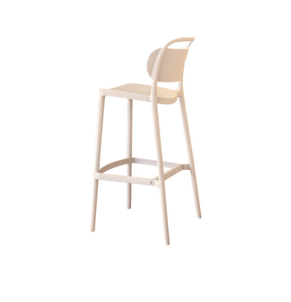 Elegante taburete, diseñado para combinar funcionalidad y estilo. Su estructura monobloc es ligera pero extremadamente duradera, ofreciendo una solución práctica y estética para cualquier espacio de barra. Cuenta con un respaldo bajo ergonómico y reposapiés en los cuatro lados para mayor comodidad.